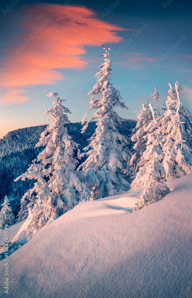 WEBLUX obraz na plátně 1D, 3D, 4D, 5D - Marvelous winter sunrise in Carpathian mountains with snow covered fir trees