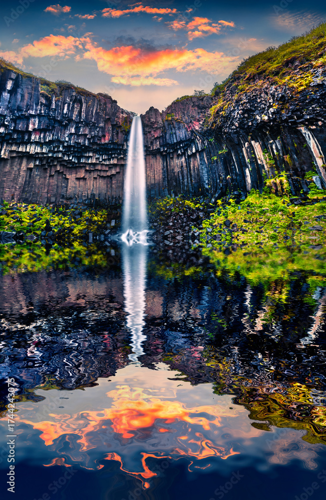 WEBLUX obraz na plátně 1D, 3D, 4D, 5D - Dramatic morning view of famous Svartifoss (Black Fall) Waterfall