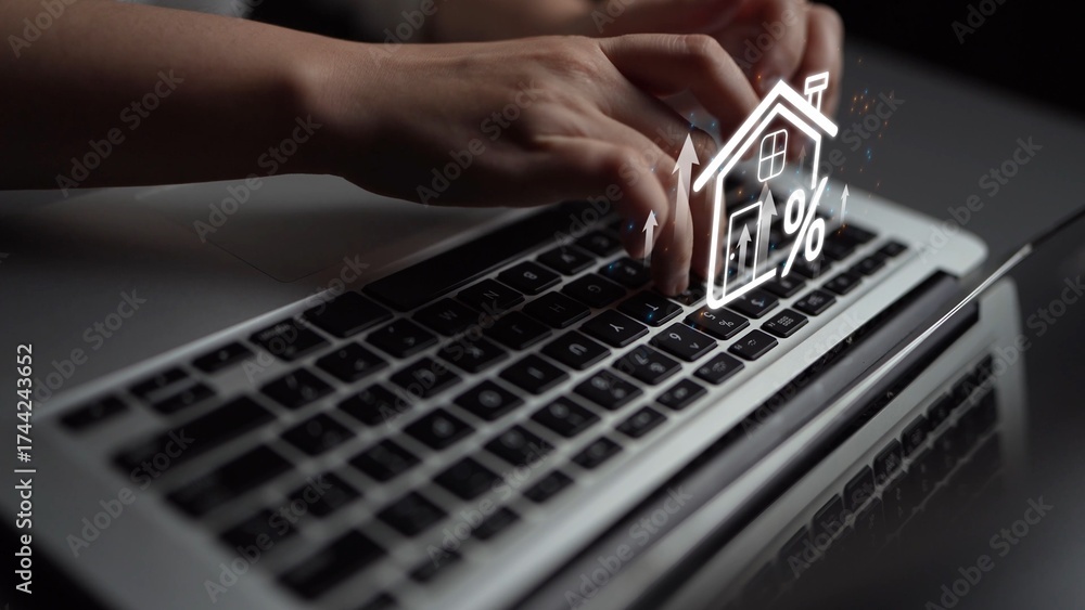 WEBLUX obraz na plátně 1D, 3D, 4D, 5D - Real estate investment profit illustration showing rising house value, property return, and real estate profit growth. Real estate investment icons highlight ROI in real estate investment. Muxer