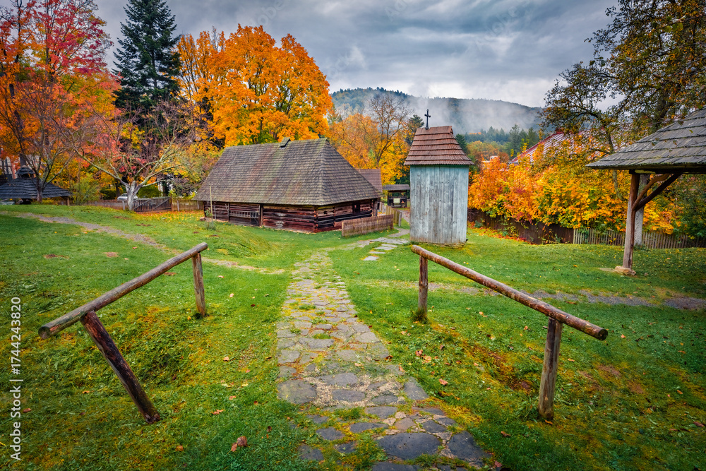 WEBLUX obraz na plátně 1D, 3D, 4D, 5D - Colorful autumn view of old wooden houses, Slovalia, Europe. Spectacular morning scene of Bardejov Spa resort. Traveling concept background.