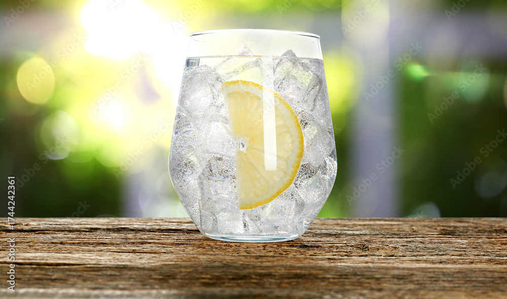 WEBLUX obraz na plátně 1D, 3D, 4D, 5D - Refreshing water with lemon and ice on table against citrus plant