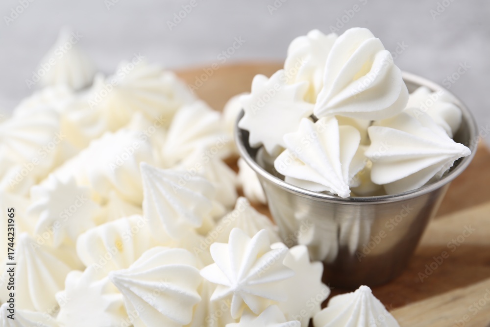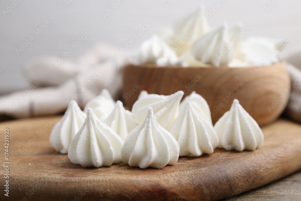WEBLUX obraz na plátně 1D, 3D, 4D, 5D - Delicious meringue cookies on wooden table, closeup