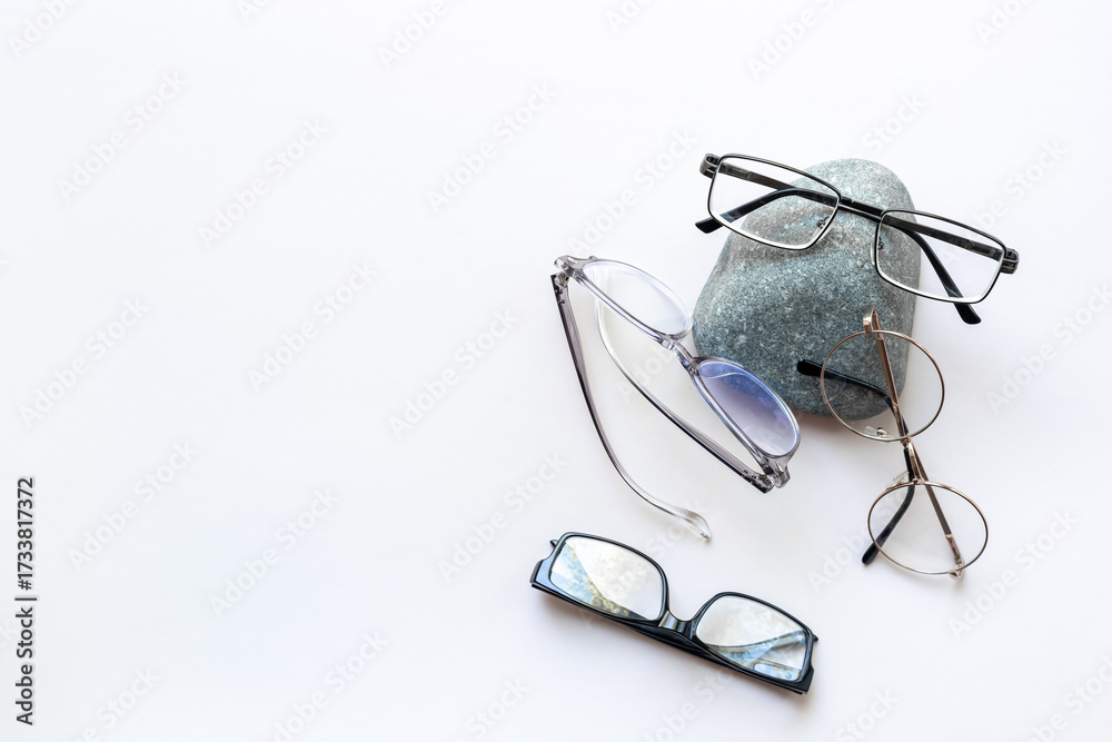 WEBLUX obraz na plátně 1D, 3D, 4D, 5D - Set of stylish glasses, top view. Eye care concept