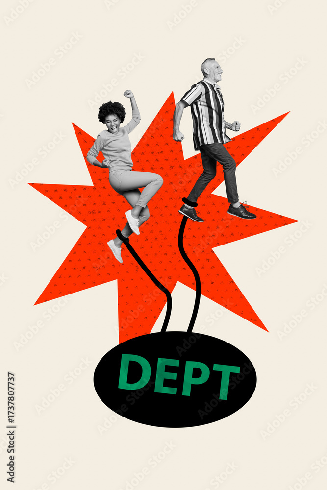 WEBLUX obraz na plátně 1D, 3D, 4D, 5D - Trendy pop zine sketch artwork collage of inexperienced business partners walk debt hole trap jail rope bankruptcy problem