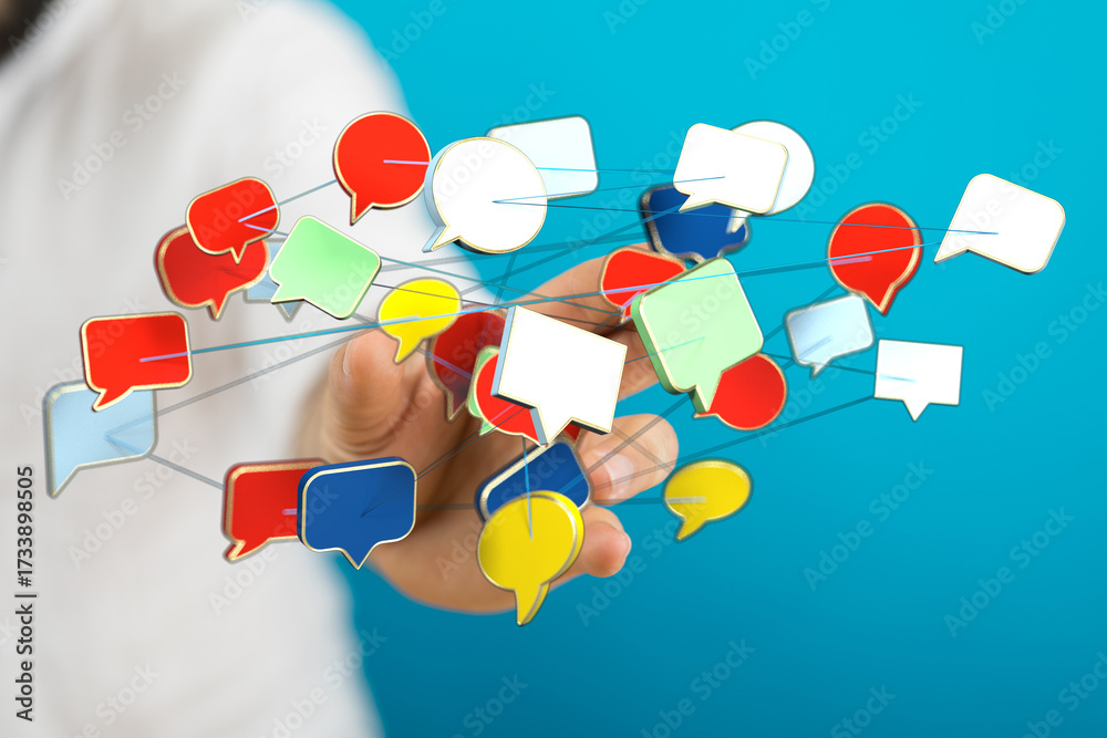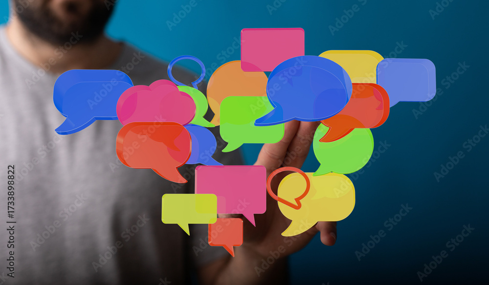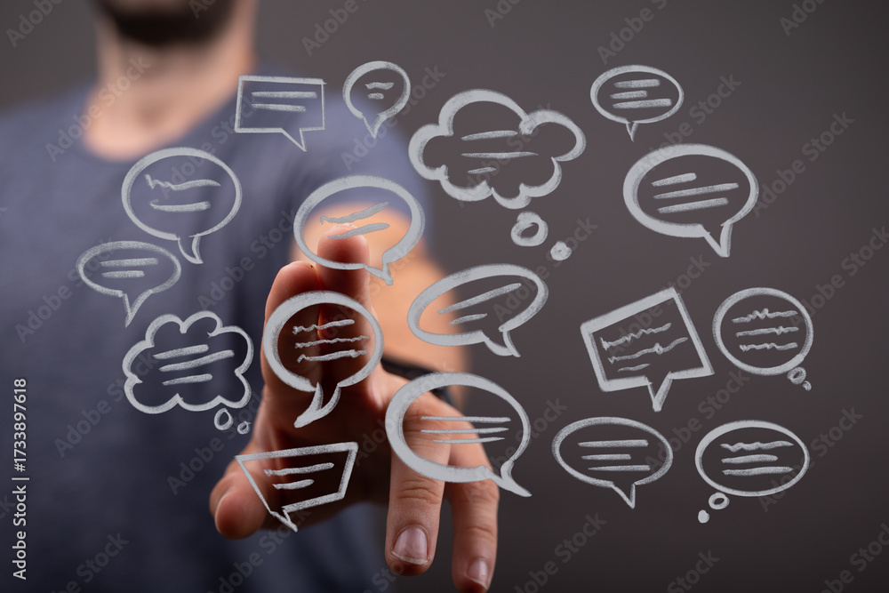 WEBLUX obraz na plátně 1D, 3D, 4D, 5D - Person interacting with digital speech bubbles, communication and messages concept, modern business presentation and social network interaction.