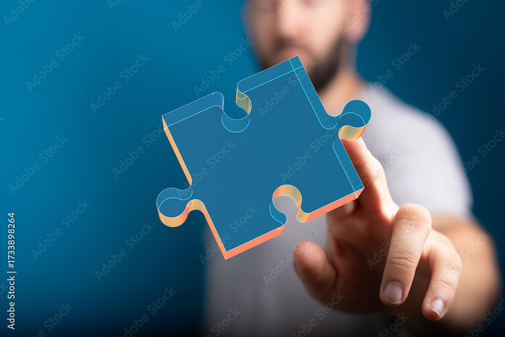 WEBLUX obraz na plátně 1D, 3D, 4D, 5D - Abstract image of a hand holding a digital puzzle piece. Represents solution, connection, innovation, and teamwork.