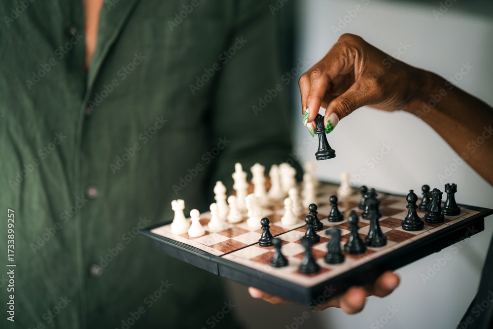 WEBLUX obraz na plátně 1D, 3D, 4D, 5D - Hand of business person, people moving chess figure in competition success play.