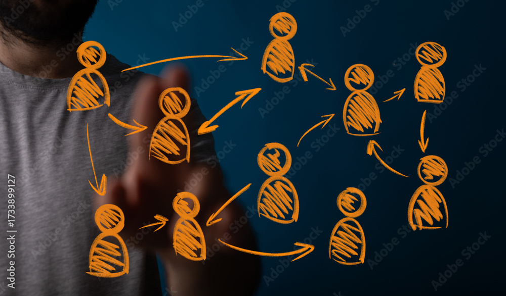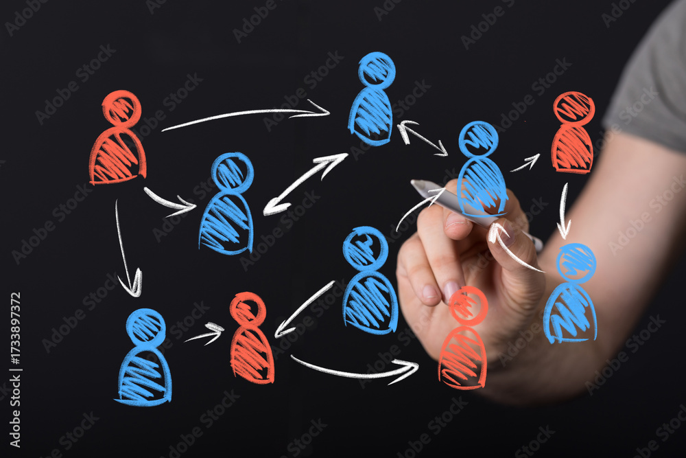 WEBLUX obraz na plátně 1D, 3D, 4D, 5D - Hand drawing a network diagram. Illustrates connections, communication, teamwork.