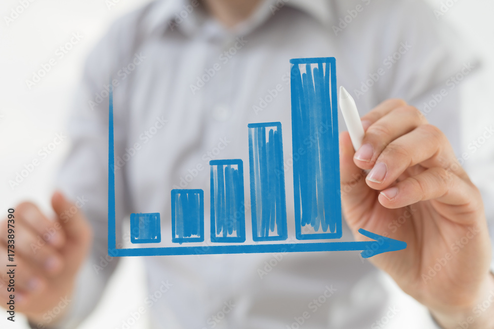 WEBLUX obraz na plátně 1D, 3D, 4D, 5D - Image of a hand drawing an upward trending bar graph, symbolizing growth, success, and progress in business.