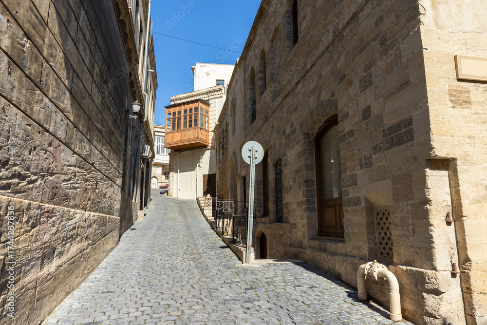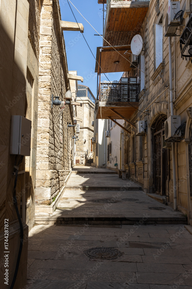 WEBLUX obraz na plátně 1D, 3D, 4D, 5D - Baku, Azerbaijan. Old town street view. A narrow, sunlit cobblestone lane