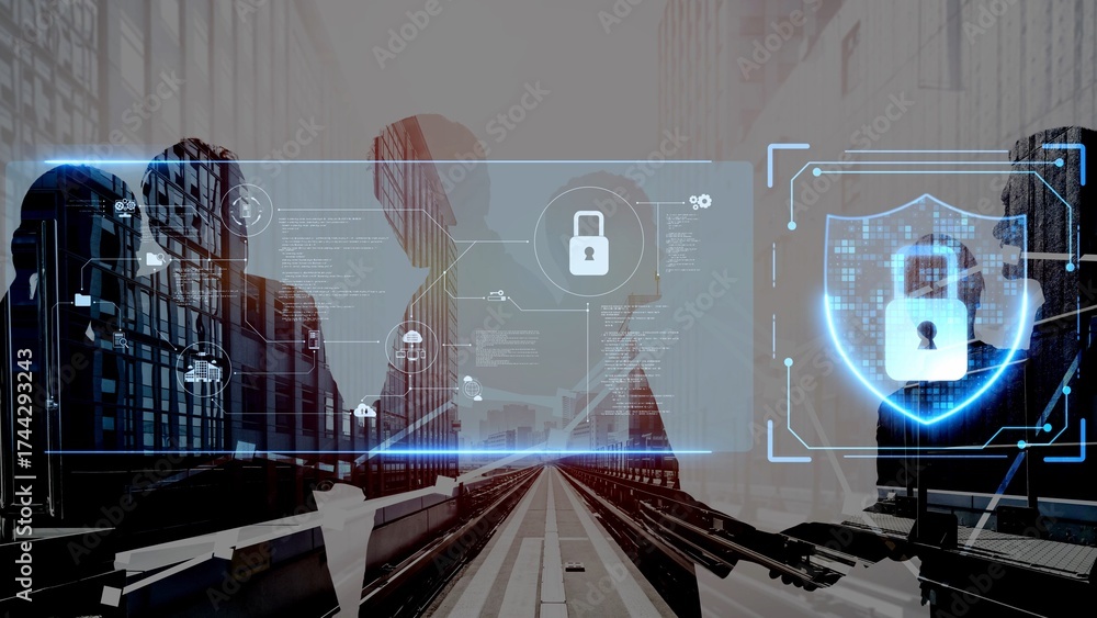 WEBLUX obraz na plátně 1D, 3D, 4D, 5D - Cyber security protection and cyber security strategies against cyber threats, system hacks, digital breaches, network attacks, and safeguarding data with strong cyber security infrastructure. Muxer