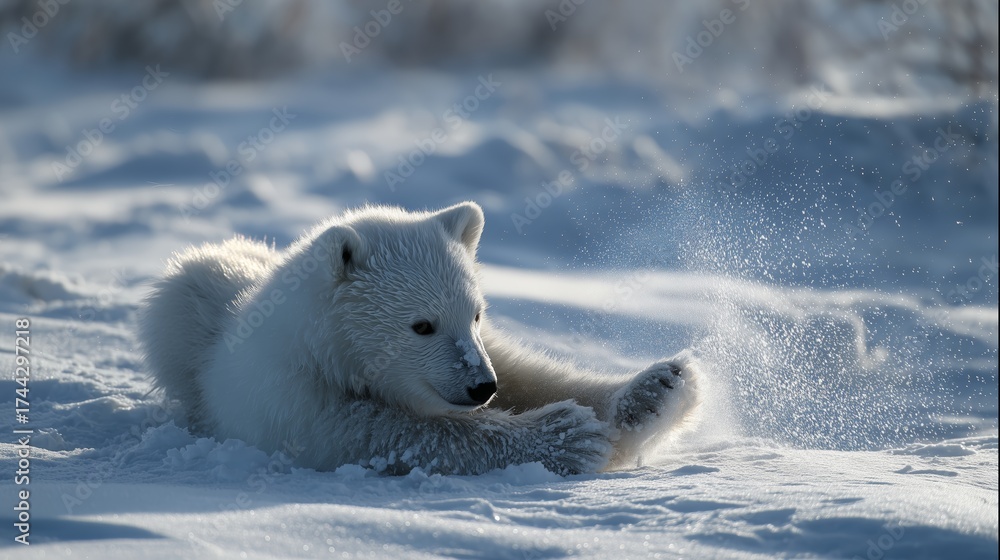 WEBLUX obraz na plátně 1D, 3D, 4D, 5D - Polar bear cub playing in the snowy landscape during a bright winter day