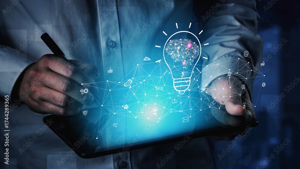 WEBLUX obraz na plátně 1D, 3D, 4D, 5D - AI innovation with neural network and digital transformation. AI innovation drives automation, powers ideas, AI innovation enhances SEO, and AI innovation enables global connection. Marrow