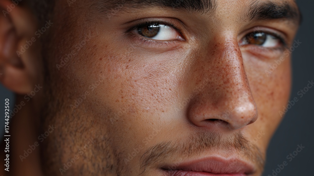 WEBLUX obraz na plátně 1D, 3D, 4D, 5D - Close-up of a man`s face showcasing striking features and expressive eyes