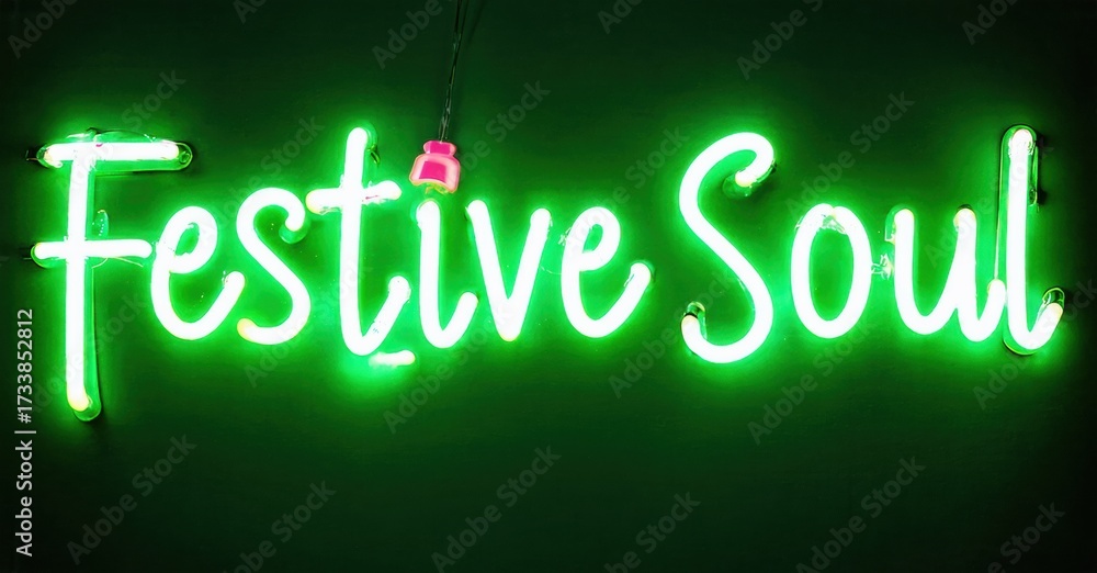 WEBLUX obraz na plátně 1D, 3D, 4D, 5D - Bright green neon sign displays text Festive Soul. Dark background emphasizes glowing script lettering. Simple, vibrant presentation.