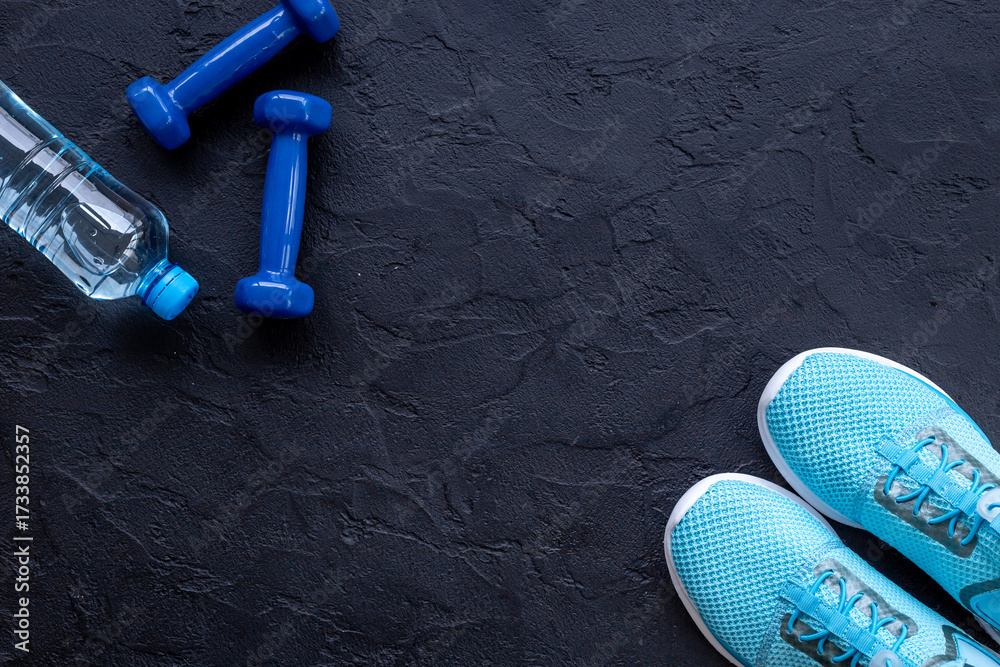 WEBLUX obraz na plátně 1D, 3D, 4D, 5D - Flat lay of fitness sports equipment. Sneakers and dumbbells for gym. Wellness concept