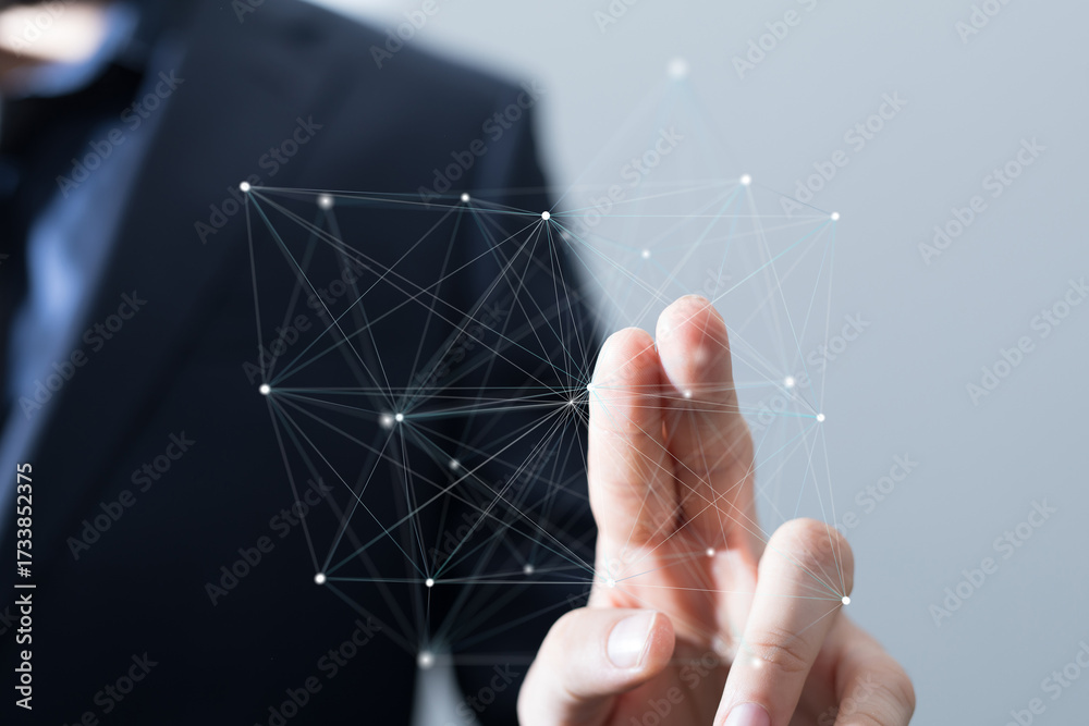 WEBLUX obraz na plátně 1D, 3D, 4D, 5D - Abstract image of a businessman interacting with a digital network, representing connection, technology, and innovation.
