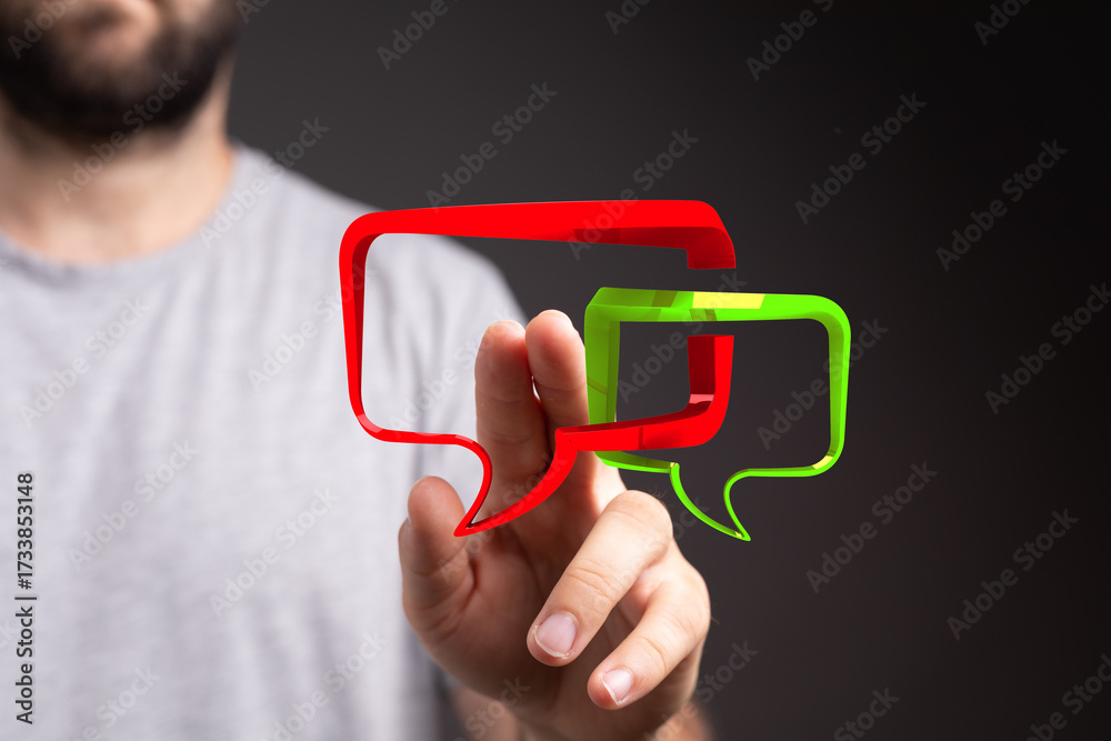 WEBLUX obraz na plátně 1D, 3D, 4D, 5D - Conceptual communication image showing chat bubbles interaction. Ideal for illustrating online dialogue, feedback, or support.