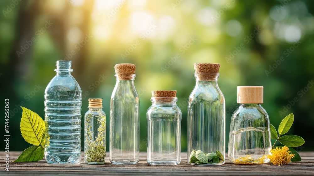 WEBLUX obraz na plátně 1D, 3D, 4D, 5D - Sustainable packaging made from recycled materials in clear focus with softly blurred natural elements enhancing ecofriendly appeal.