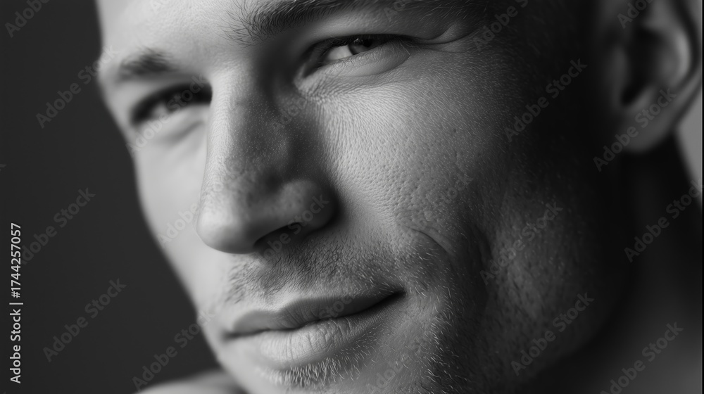 WEBLUX obraz na plátně 1D, 3D, 4D, 5D - Close-up portrait of a man with intense expression in black and white lighting