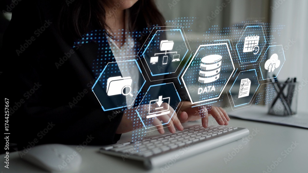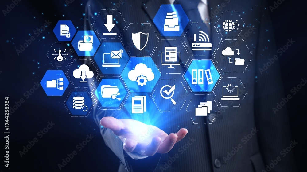 WEBLUX obraz na plátně 1D, 3D, 4D, 5D - Concept design of managing online documents with cloud storage, digital file management, and secure sharing. Online documents improve workflow, online documents enhance security. Gist