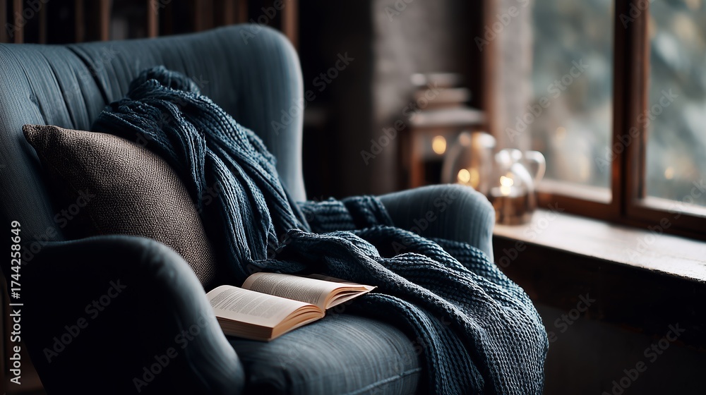 WEBLUX obraz na plátně 1D, 3D, 4D, 5D - Cozy reading nook by the window with a book and blanket in a warm atmosphere