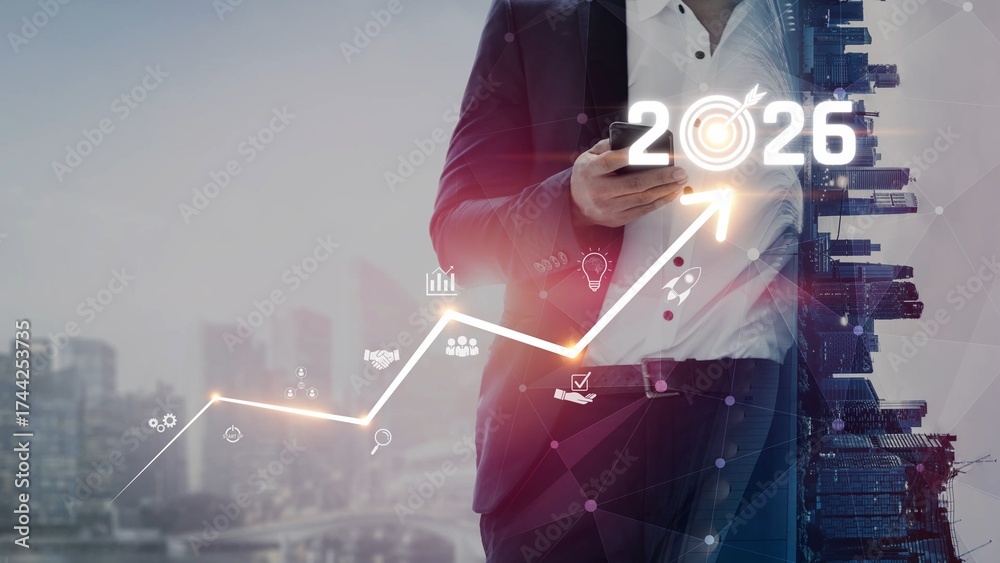 WEBLUX obraz na plátně 1D, 3D, 4D, 5D - 2026 business goal and growth strategy focuses on business, goal, and growth through roadmap, development, and team-driven achievement with future planning Marrow