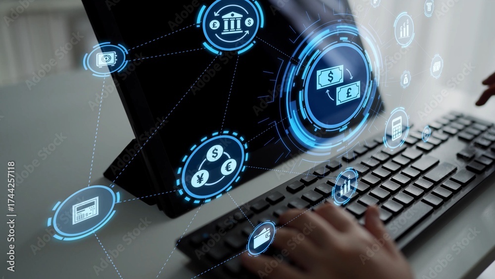 WEBLUX obraz na plátně 1D, 3D, 4D, 5D - Currency exchange and fintech innovation in global money transfer, digital currency conversion, secure currency exchange platforms, and next-generation money exchange technologies. Funnel