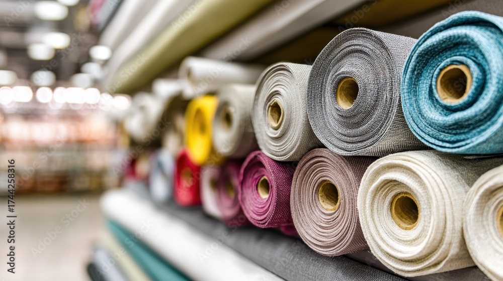 WEBLUX obraz na plátně 1D, 3D, 4D, 5D - Closeup medium shot of shade fabric rolls stacked in a retail greenhouse supply store main fabric roll in sharp focus with other items softly blurred