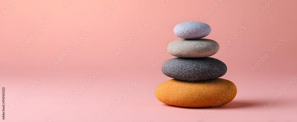 WEBLUX obraz na plátně 1D, 3D, 4D, 5D - Stacked stones on soft backdrop showing calm harmony and simple wellness vibe.