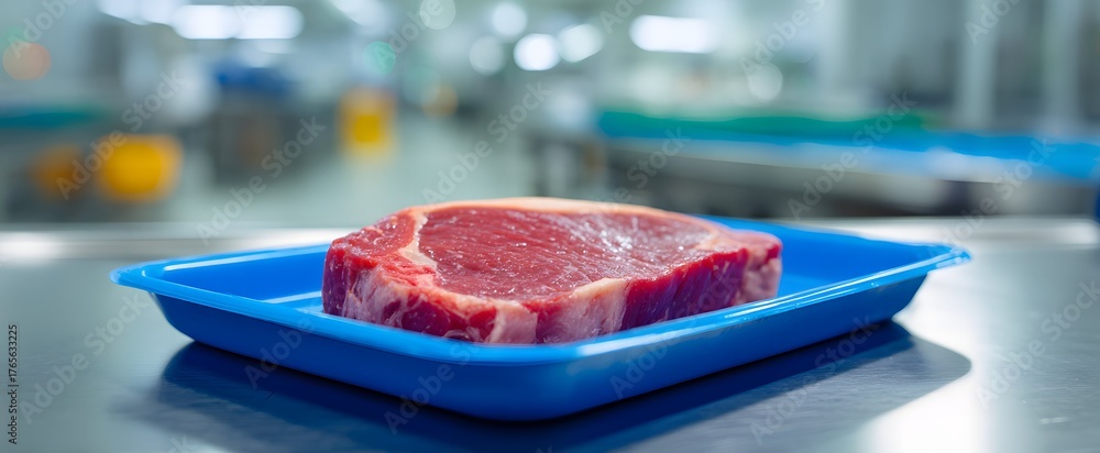 WEBLUX obraz na plátně 1D, 3D, 4D, 5D - the steak wrapped on a blue platter in a sleek food processing plant