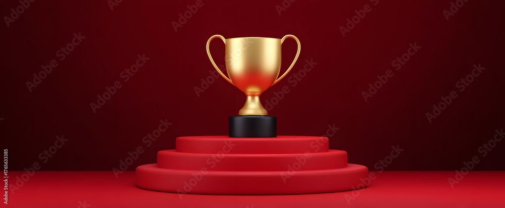 WEBLUX obraz na plátně 1D, 3D, 4D, 5D - The trophy on a vibrant red stage represents triumphant and esteemed victory achievement