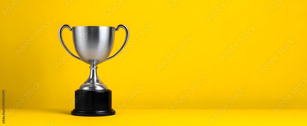 WEBLUX obraz na plátně 1D, 3D, 4D, 5D - The trophy stands prominent against a vibrant yellow background representing success and achievement